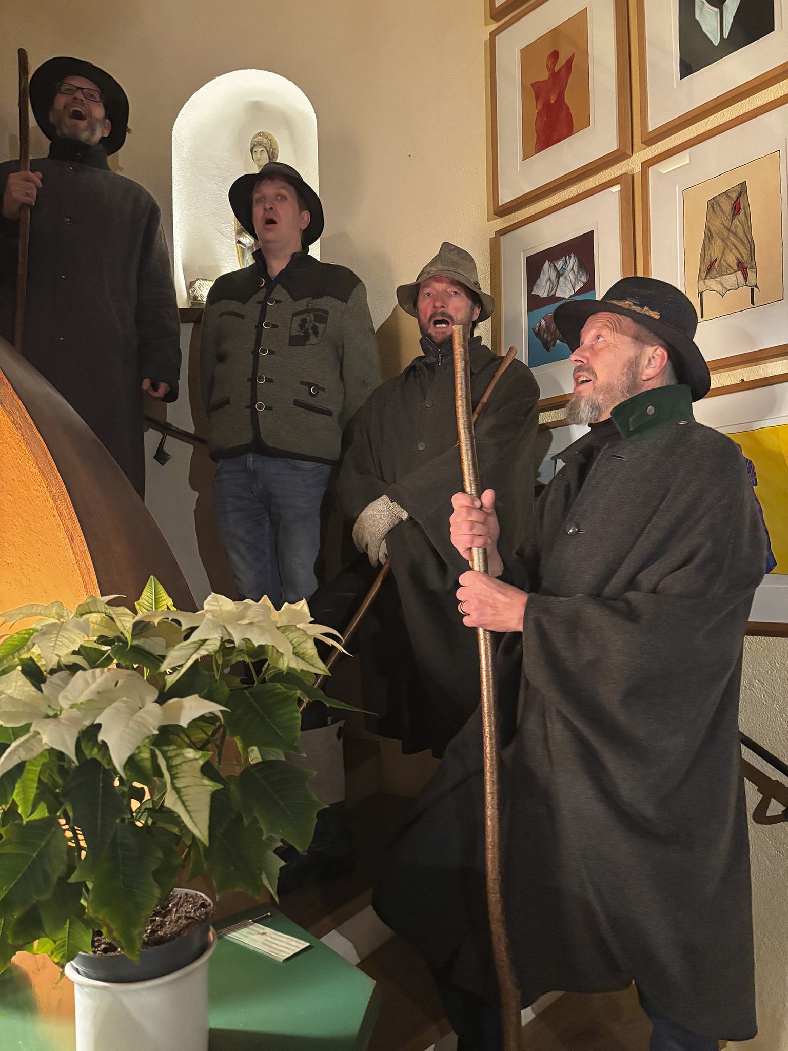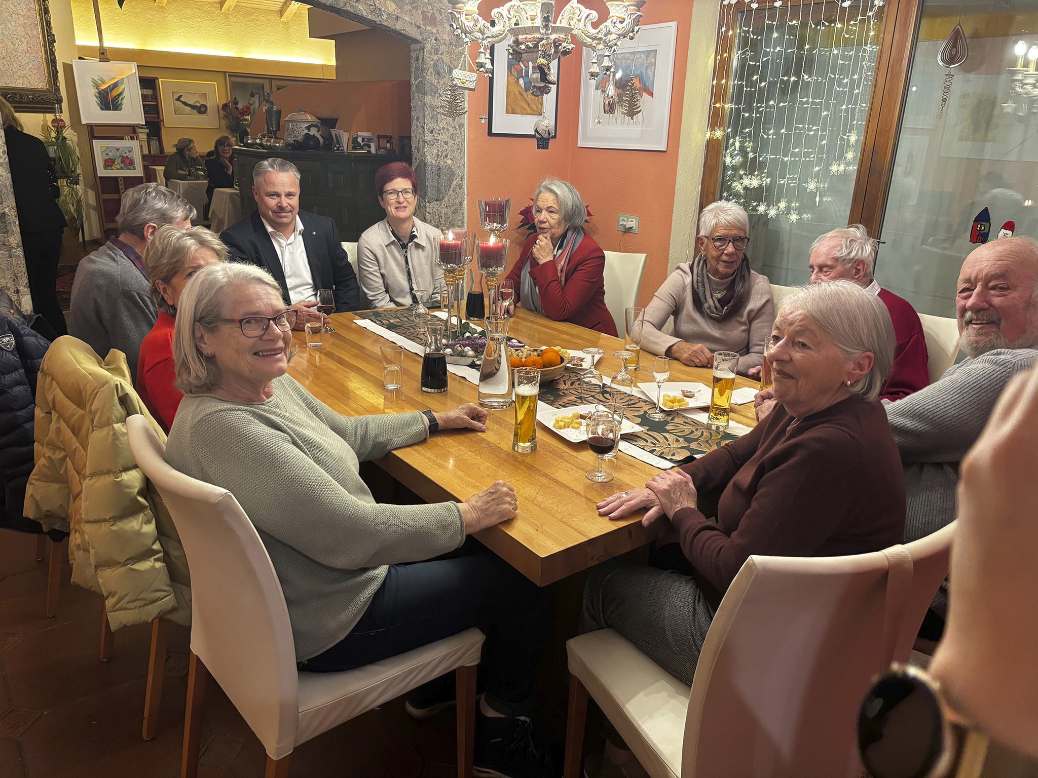 Schon traditionell, eröffneten beeindruckend und stimmgewaltig 21 Wildermieminger AnklöpflerInnen mit ihrem Chorleiter Bernhard Großlercher und dem Obmann des Singkreises Philiph Kiechl mit ihren alten Tiroler Adventliedern die Feier. Rund 70 Gäste ( Dauer- und Mehrfach-KäuferInnen ) waren der aus Platzgründen beschränkten Einladung gefolgt.